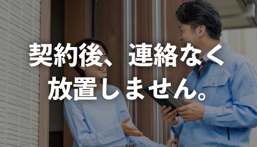 ご契約後は、営業・現場管理・サポート担当など複数名でお客様を担当いたします。工事の進捗がいつでも確認できる専用アプリもあり安心。