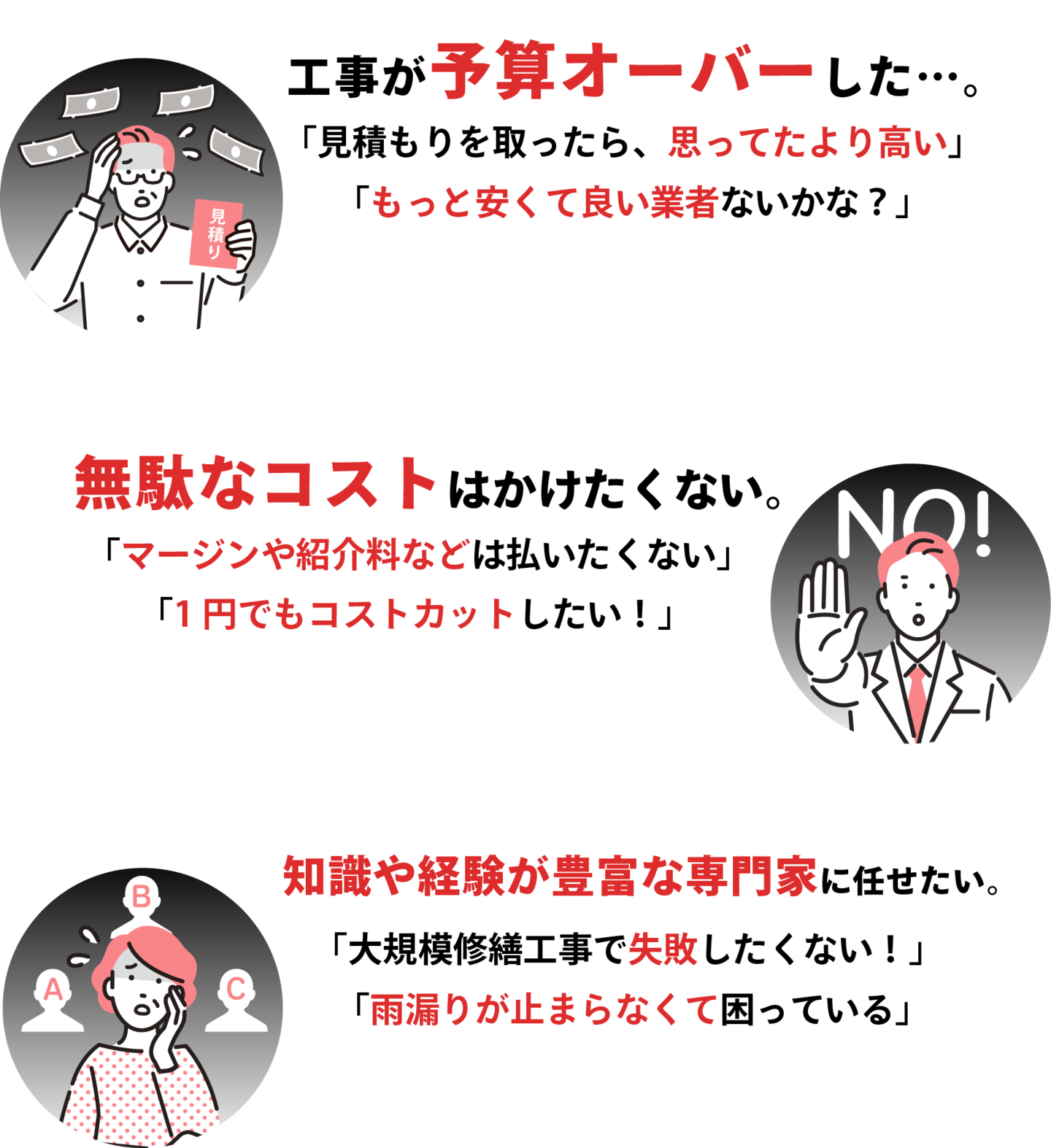 修繕が必要のない箇所は「必要がない」とはっきりお伝えし、無駄のない工事プランをご提案いたします。